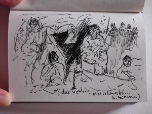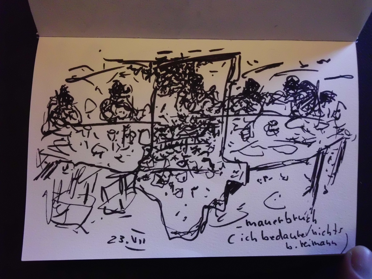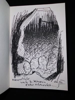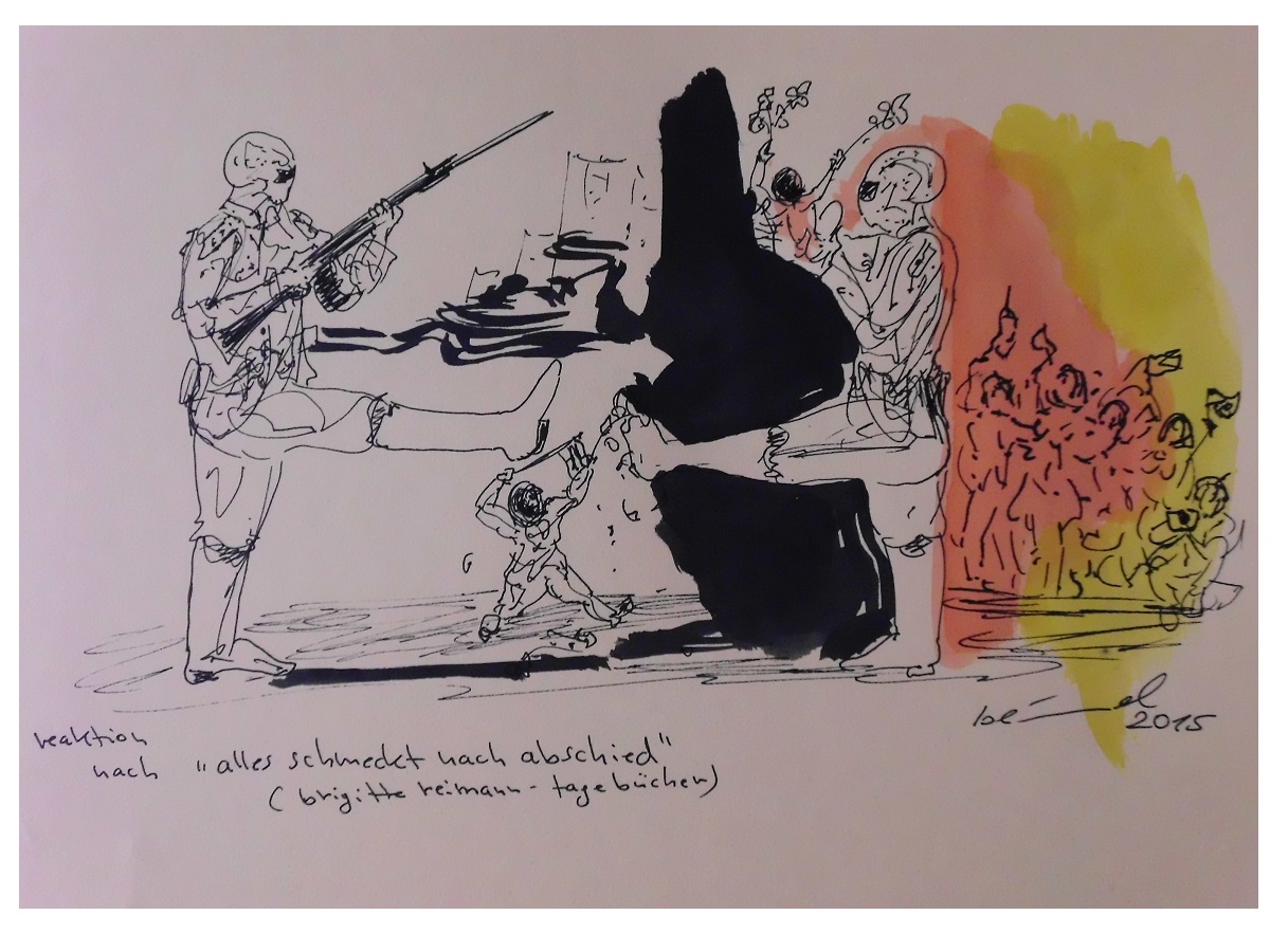 eine auswahl skizzen, zeichnungen, illustrationen sowie mischtechniken nach: "ich bedaure nichts, tagebücher 1955 - 1963, "alles schmeckt nach abschied, tagebücher 1964 - 1970" sowie "aber wir schaffen´s, verlaß dich drauf!", briefe an eine freundin im westen.