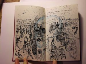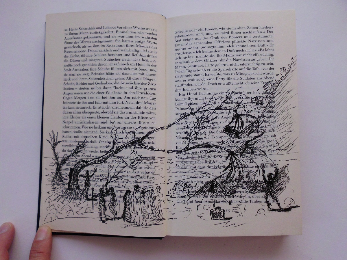 5 exemplare des romans, mit jeweils 3 variierten zeichnungen.